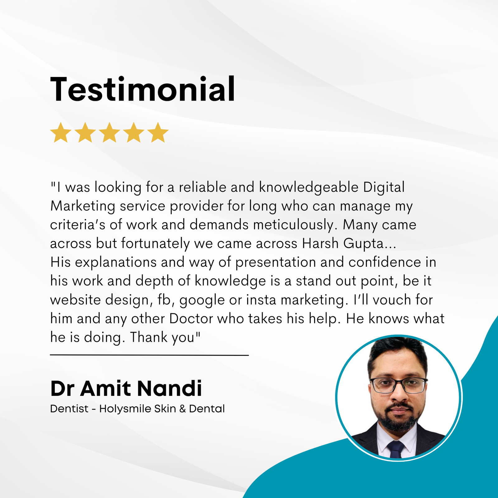 Harsh Gupta has worked tirelessly to understand the unique challenges faced by dentists and skin specialists. His expertise in social media marketing, SEO, and AI-driven solutions has helped numerous clinics across Kolkata and beyond to increase their patient footfall and build strong, reputable brands. Known for his hands-on approach and commitment to excellence, Harsh ensures that every client receives personalized attention and tailored solutions.