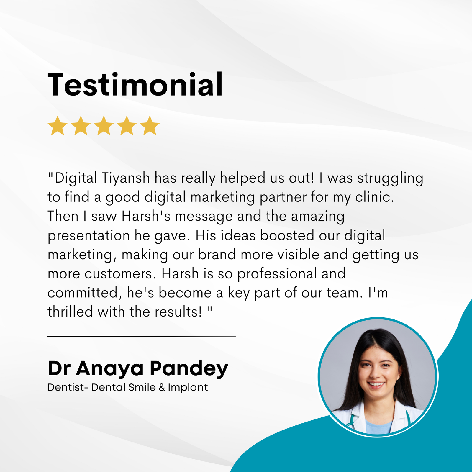 Under his leadership, Digident Media has become synonymous with success and reliability in the digital marketing landscape for healthcare professionals. Harsh’s dedication to his clients’ growth and his innovative strategies have made him a trusted partner for many dental clinics looking to thrive in a competitive market.